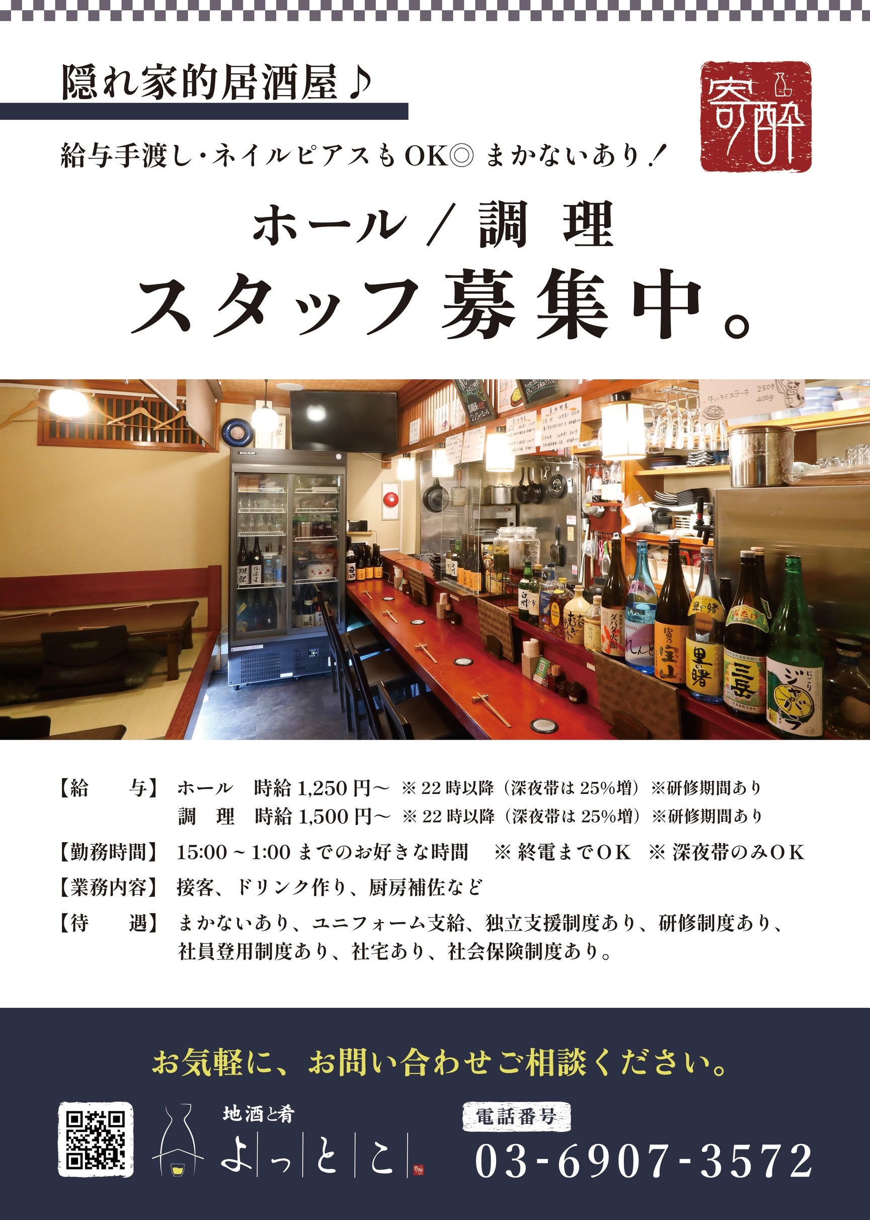現在、地酒と肴よっとこでは一緒に働いてくれるアルバイトさん大募集中♪